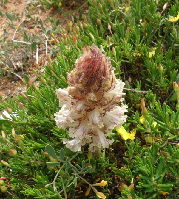 This is one of the scented broomrapes, and we have found it in Italy and Portugal. Very smiliar to Orobanche caryophyllacea (Clove-scented Broomrape), this broomrape definitely smelt of something sweet and flowery. However, as Clove-scented Broomrape is not reported from Crete, which is where we were, we can only conclude that it is, in fact, Carnation-scented Broomrape - Orobanche crenata - which is also sometimes called Bean Broomrape because it is mainly parasitic on Fabaceae species.