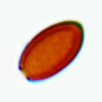 Ellipsoidal, smooth, 12.5-19.5 x 7-11.5μm; thick-walled, with a broad germ pore.